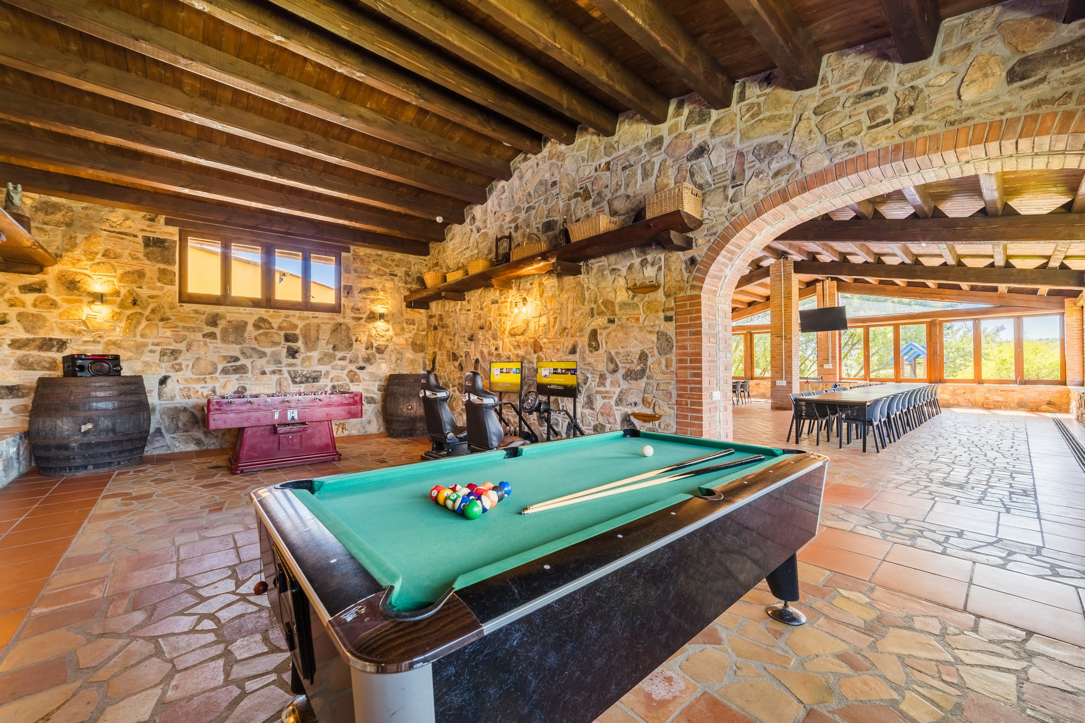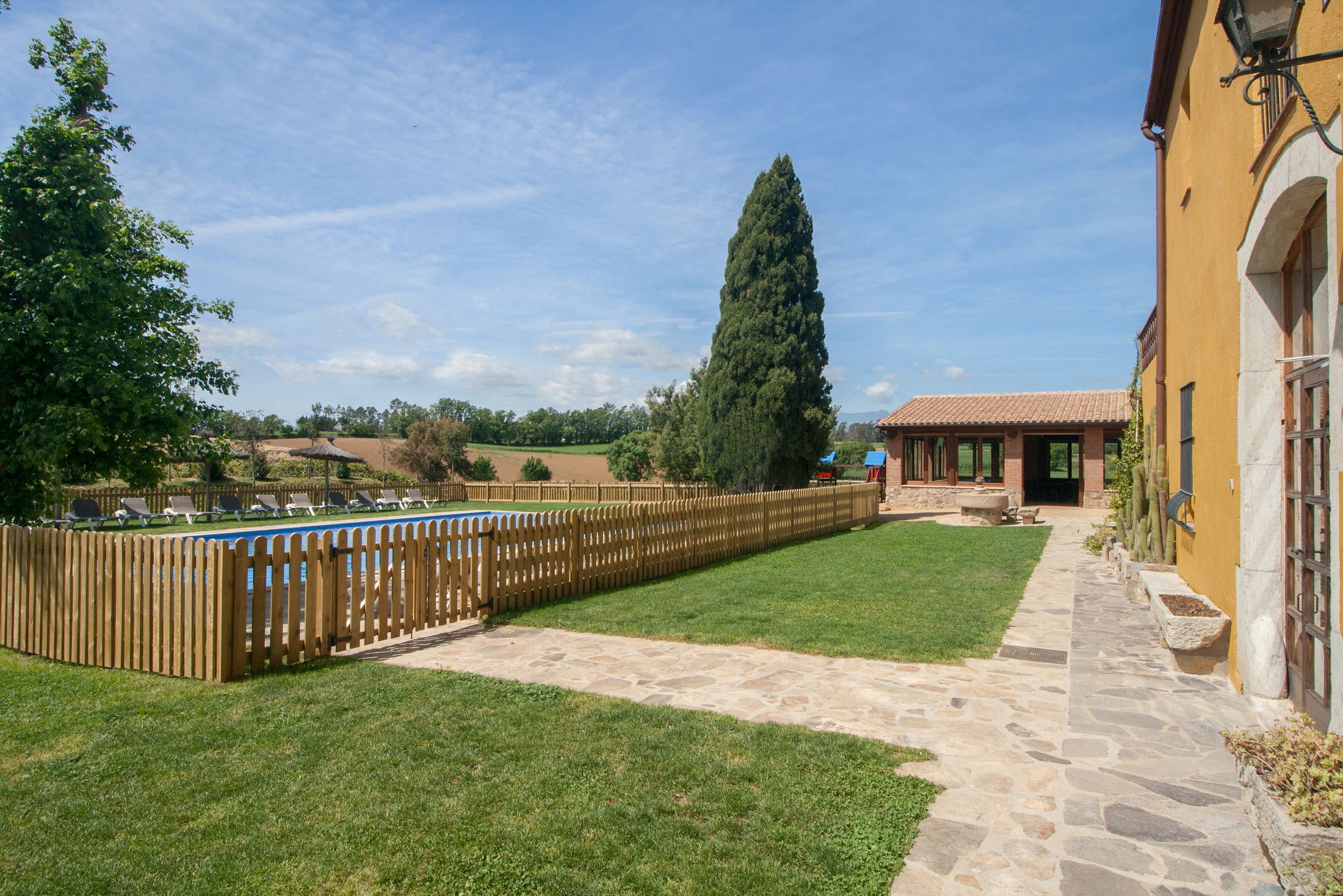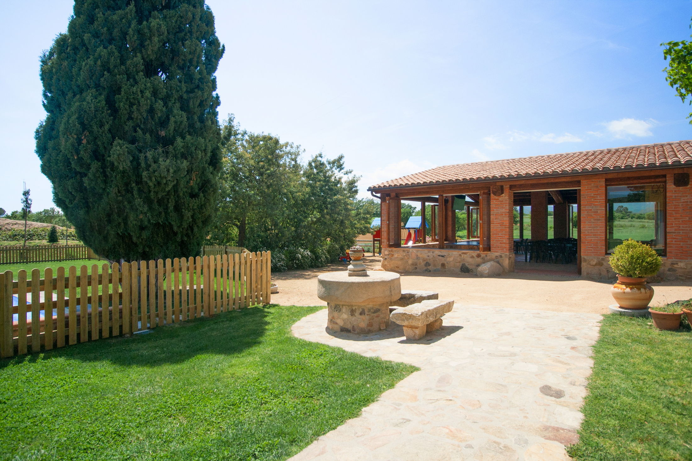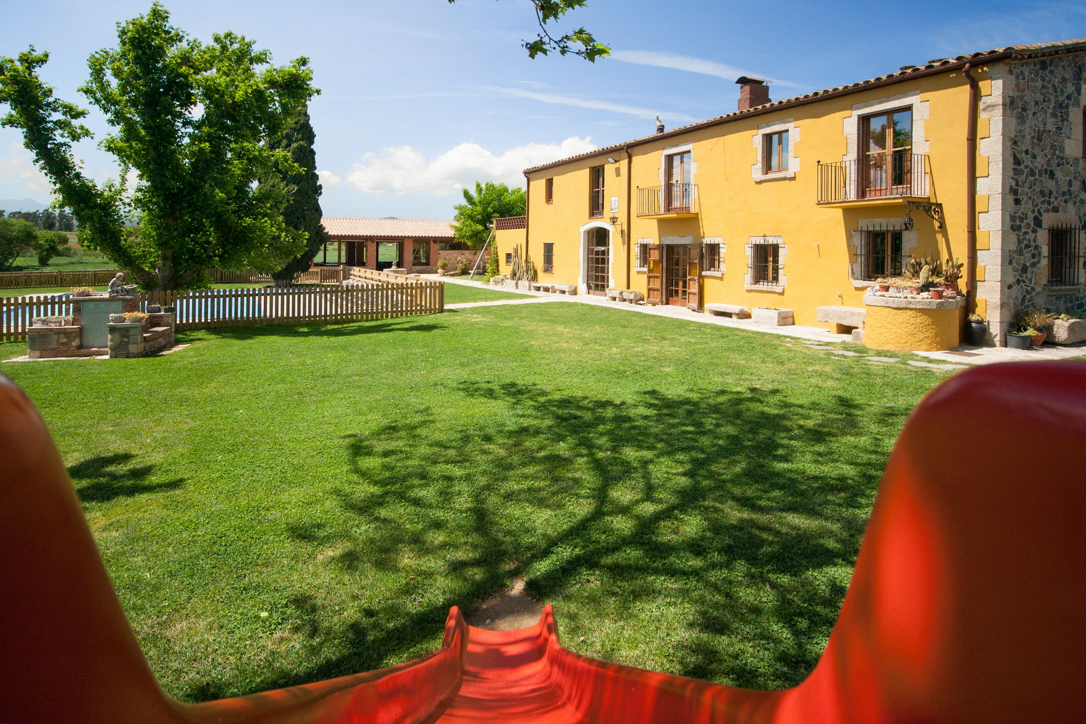 Villa Mas Sant Jordi permet de vous réunir avec toute votre famille ou bien un groupe d’amis afin de passer des vacances de rêve. Cette grande et belle Maison de Vacances peut accueillir jusqu’à 40 personnes en 15 chambres avec climatisation. En plus la villa pour large groupes vous offre des très jolies vues. Barcelone se trouve à 45 min et les plages dorées de la Costa Brava à 15 minutes.
